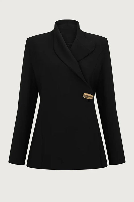 Blazer élégant et tendance à col montant, boutonné en métal, manches longues