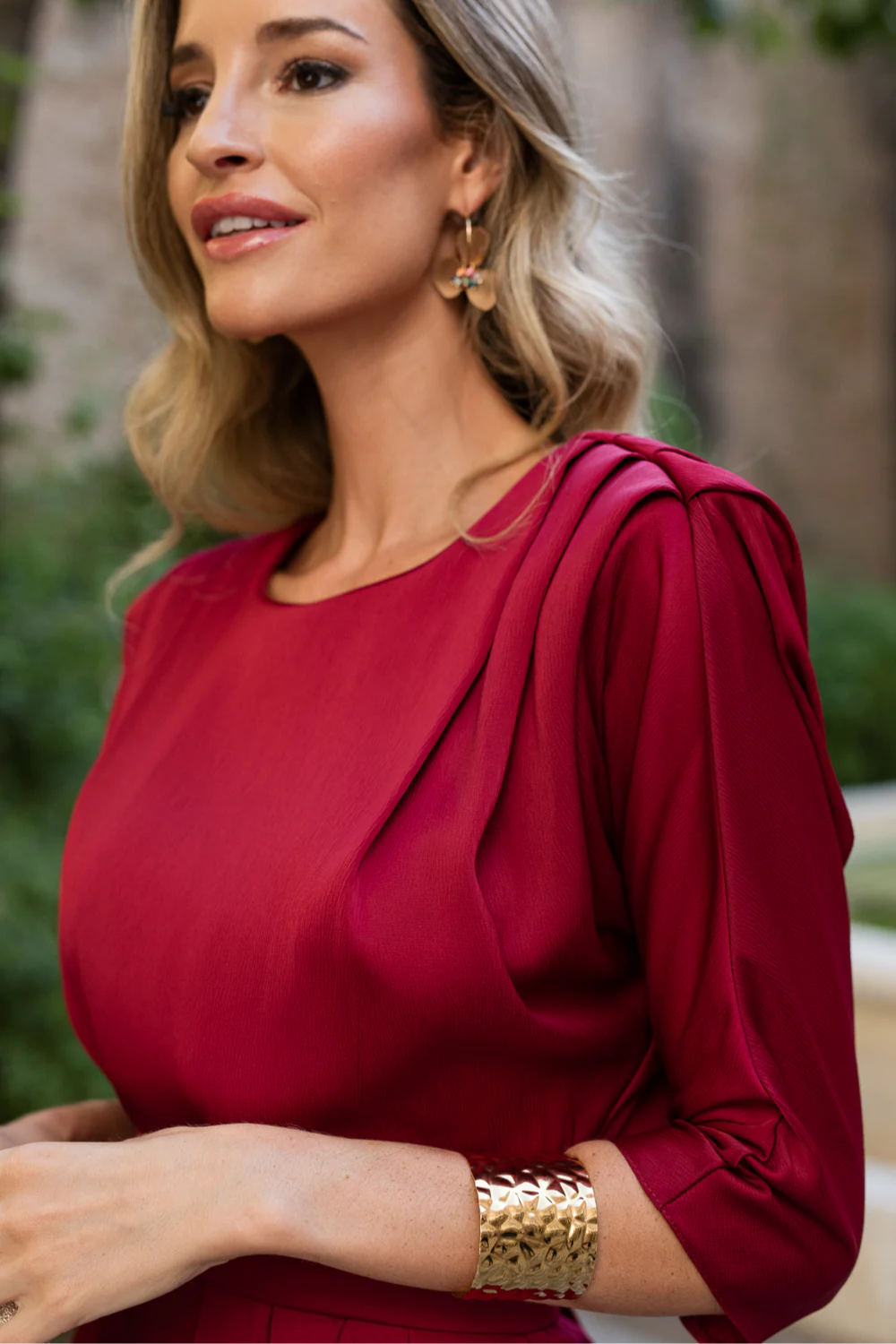 ✅ Manches trois-quarts avec épaules plissées – Offre une coupe raffinée, idéale pour un look fluide.