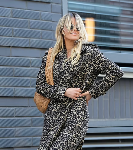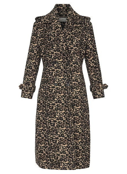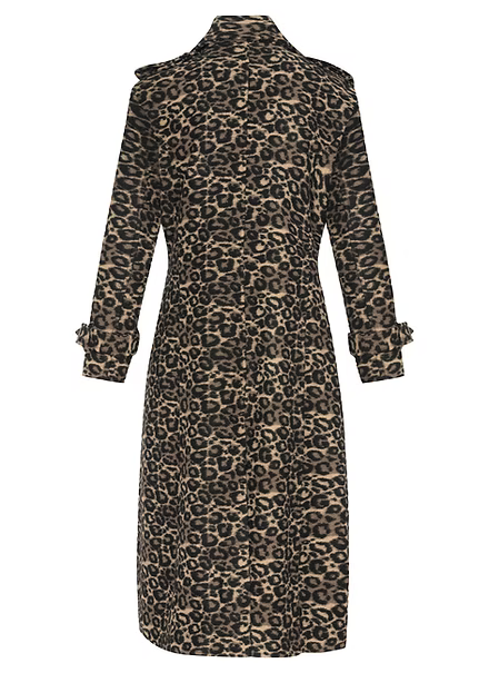 Trench mi-long à imprimé léopard avec épaulettes et ceinture